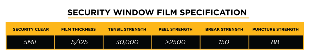 Specifically designed to hold glass together in case of breakage, this film is constructed to take a hit. 5 mil films offer a thicker construction to improve glass safety and handle more extreme direct force.